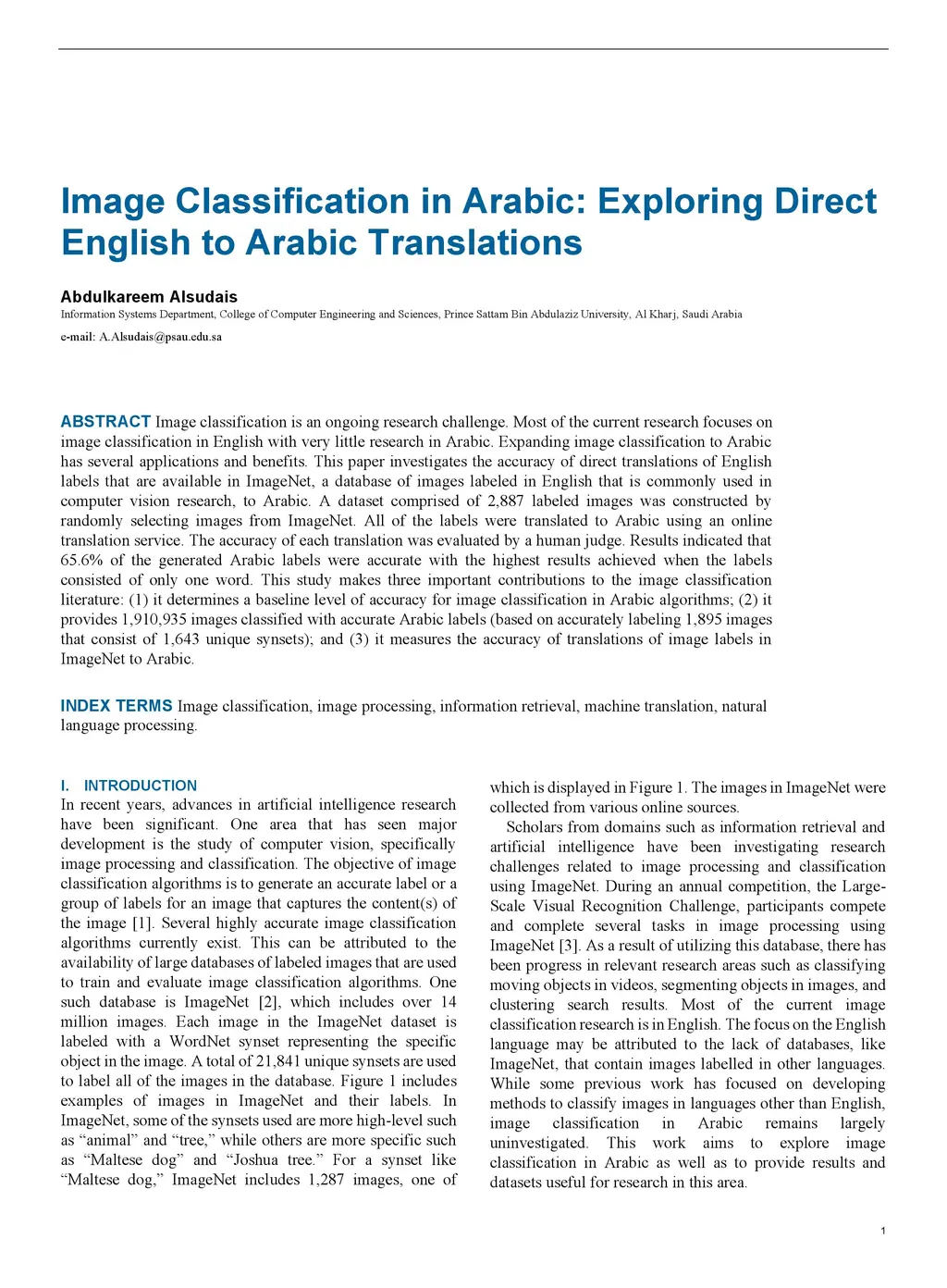Image Classification for Arabic: Assessing the Accuracy of Direct