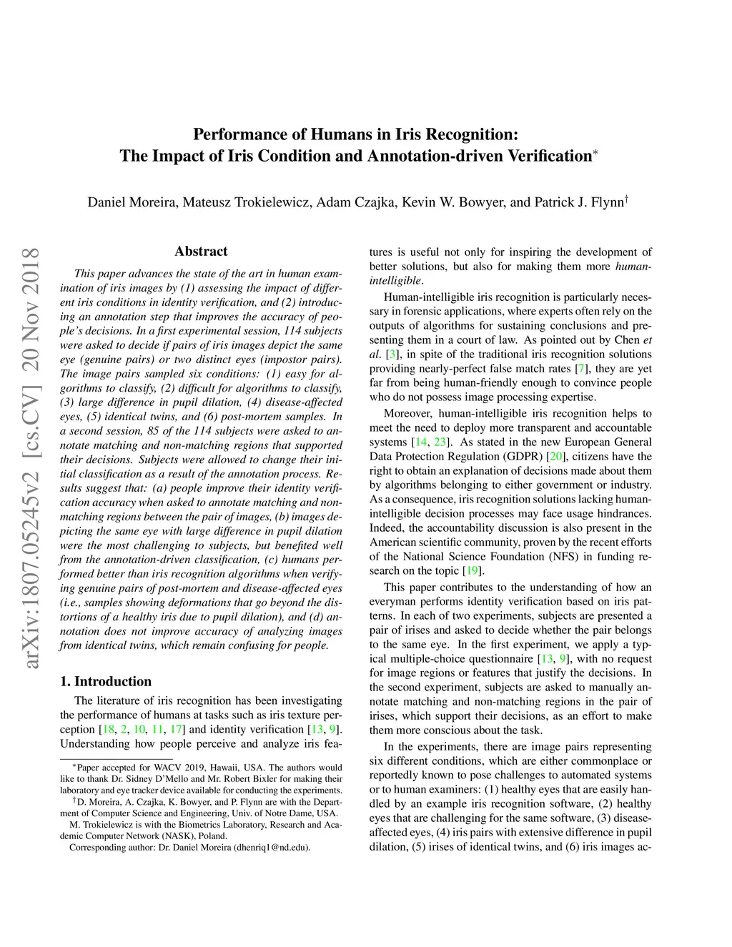 Performance of Humans in Iris Recognition: The Impact of Iris Condition