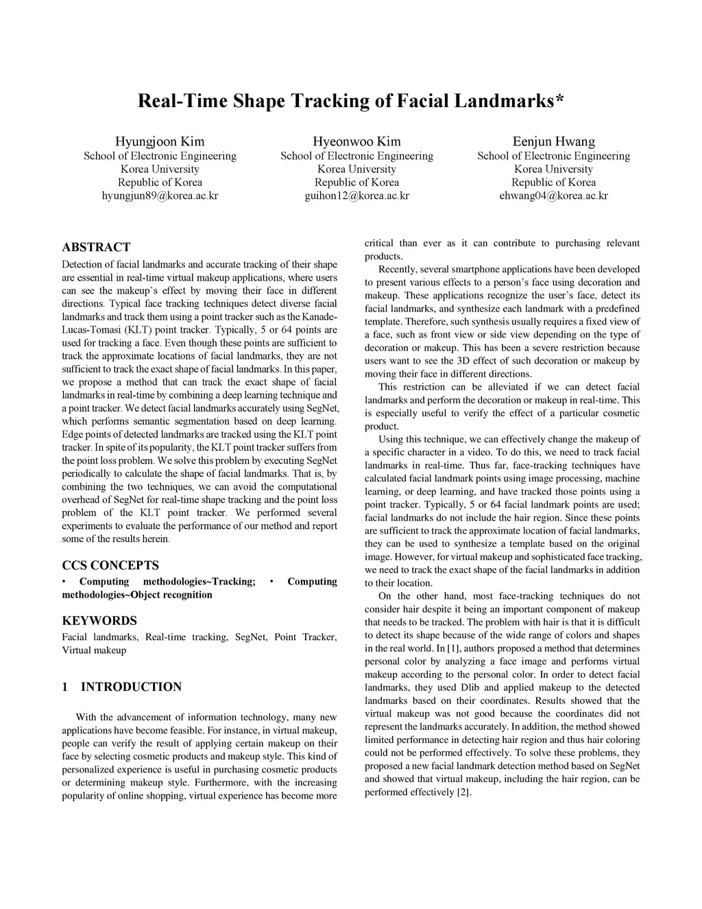 Real-Time Shape Tracking of Facial Landmarks