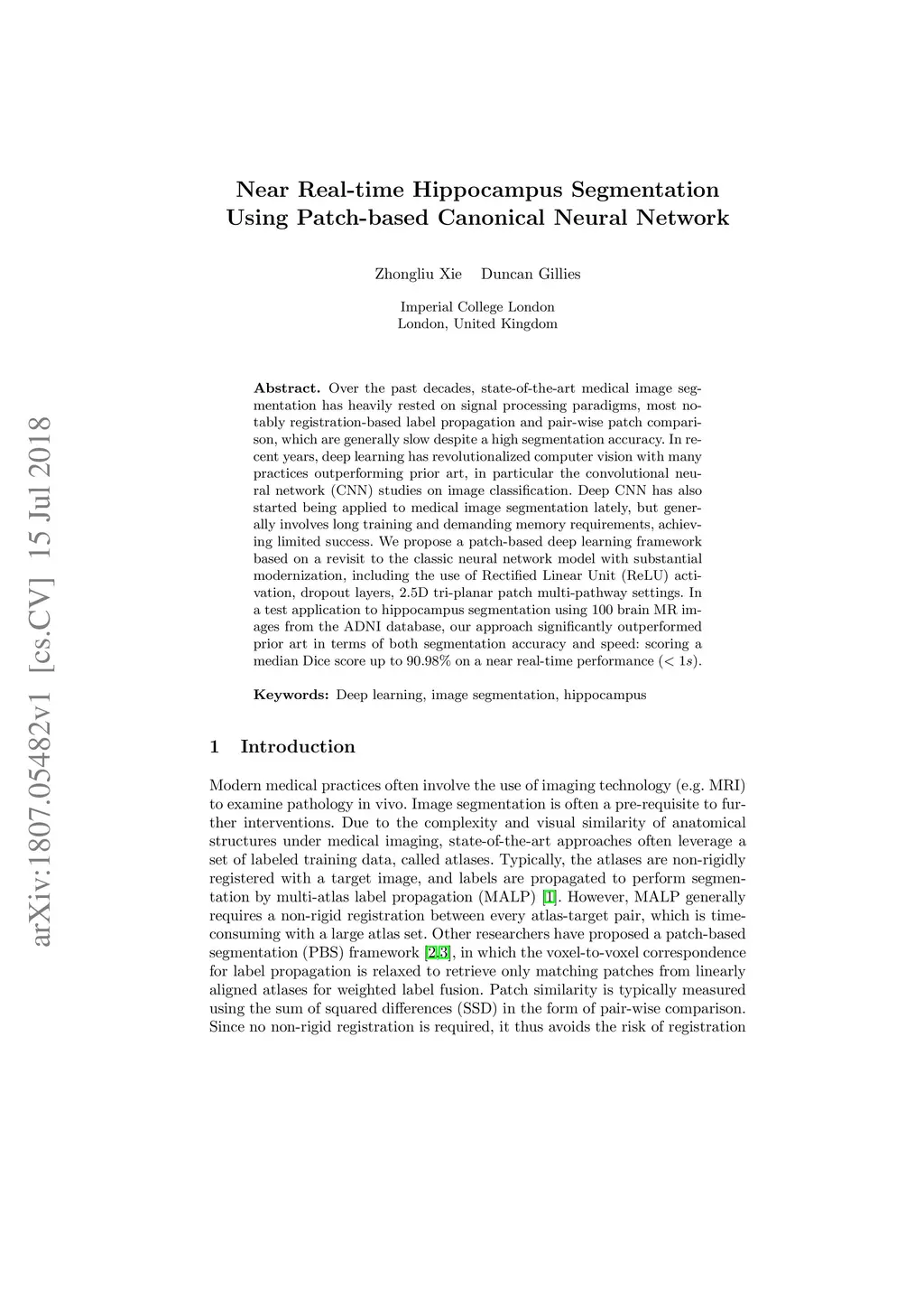 Near Real-time Hippocampus Segmentation Using Patch-based Canonical