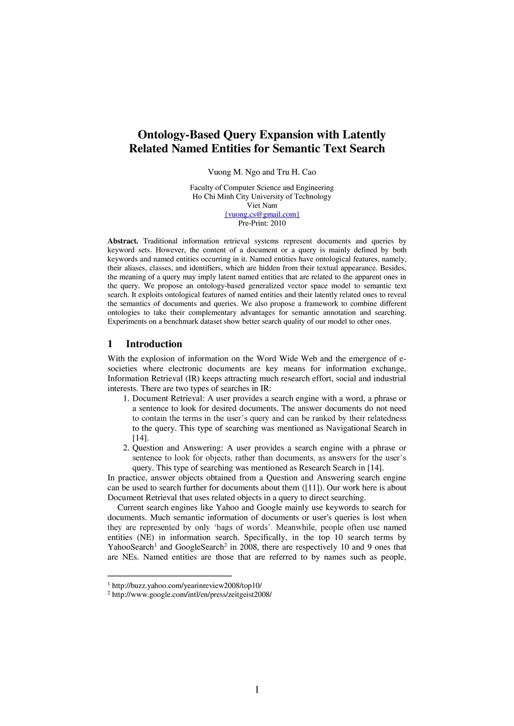 Ontology-Based Query Expansion with Latently Related Named Entities for