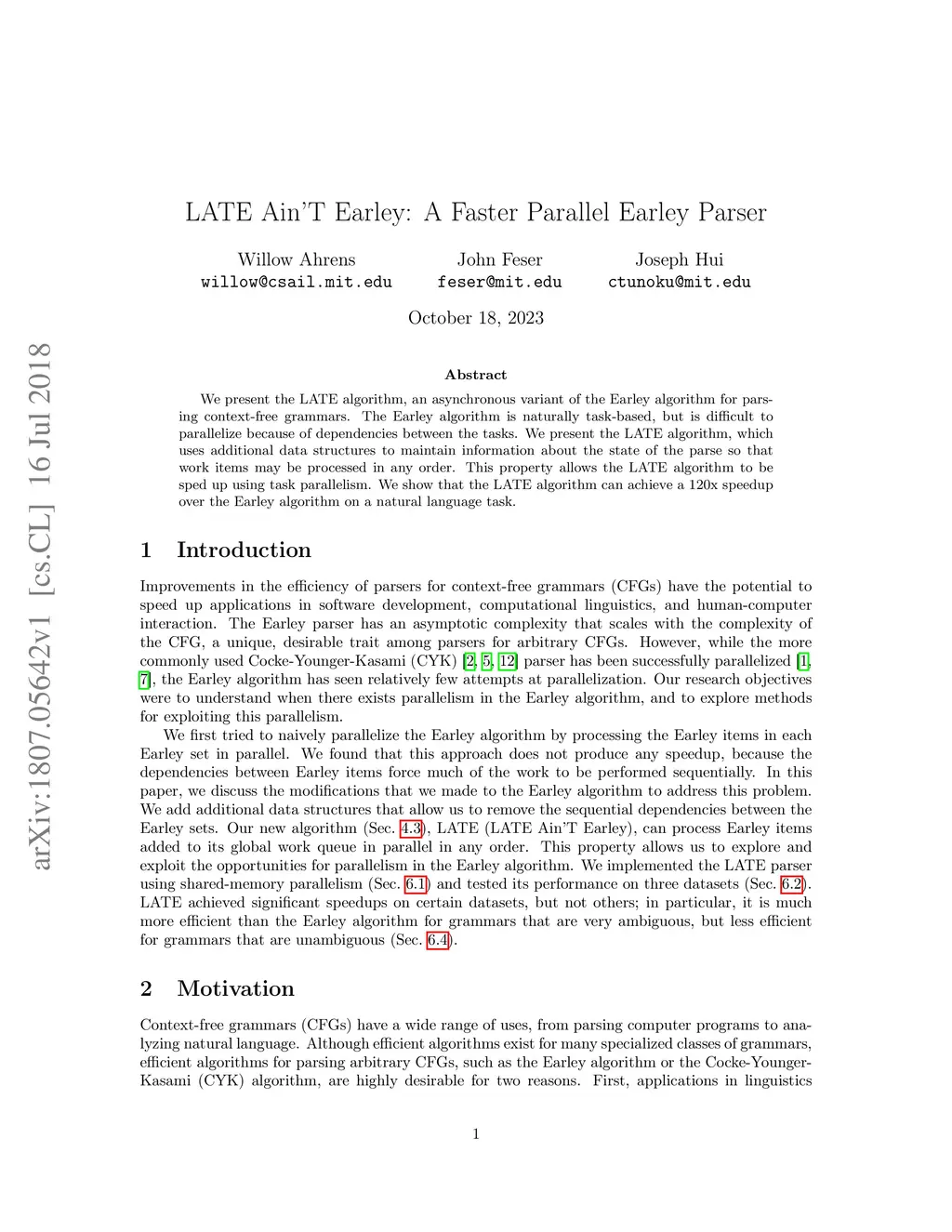 LATE Ain'T Earley: A Faster Parallel Earley Parser