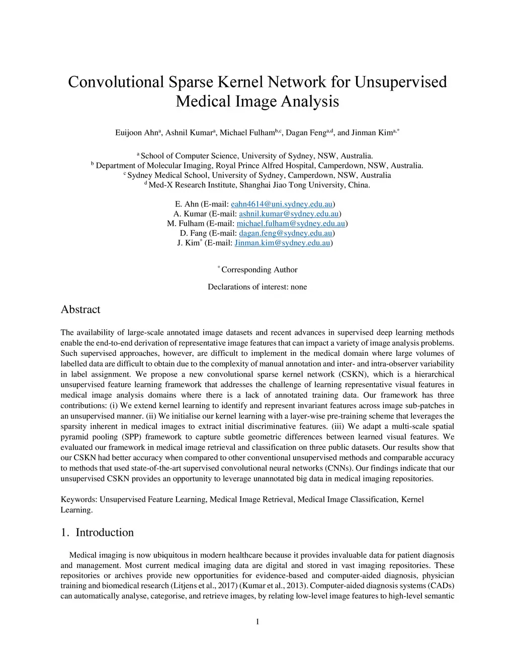 Convolutional Sparse Kernel Network for Unsupervised Medical Image