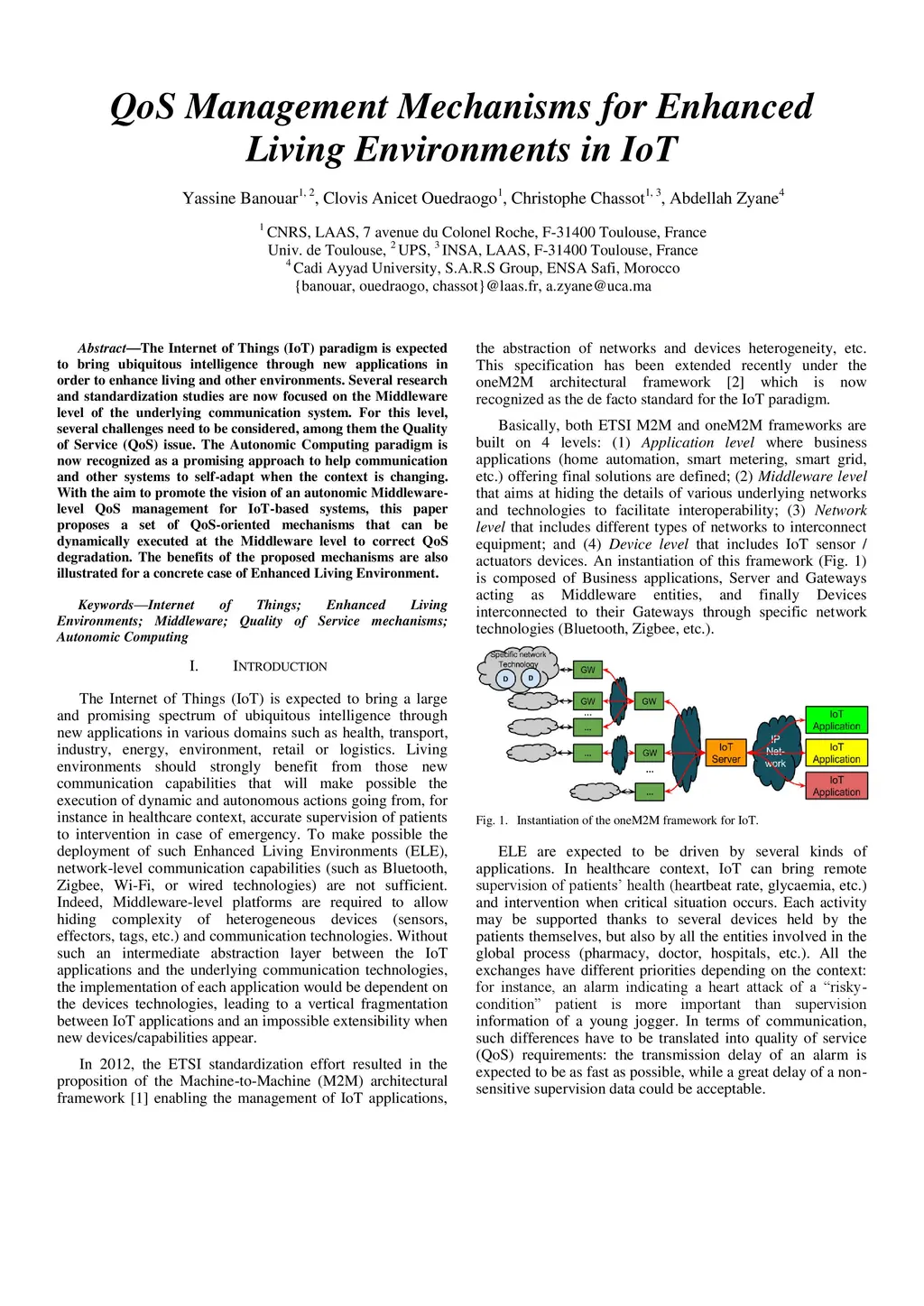 QoS management mechanisms for Enhanced Living Environments in IoT