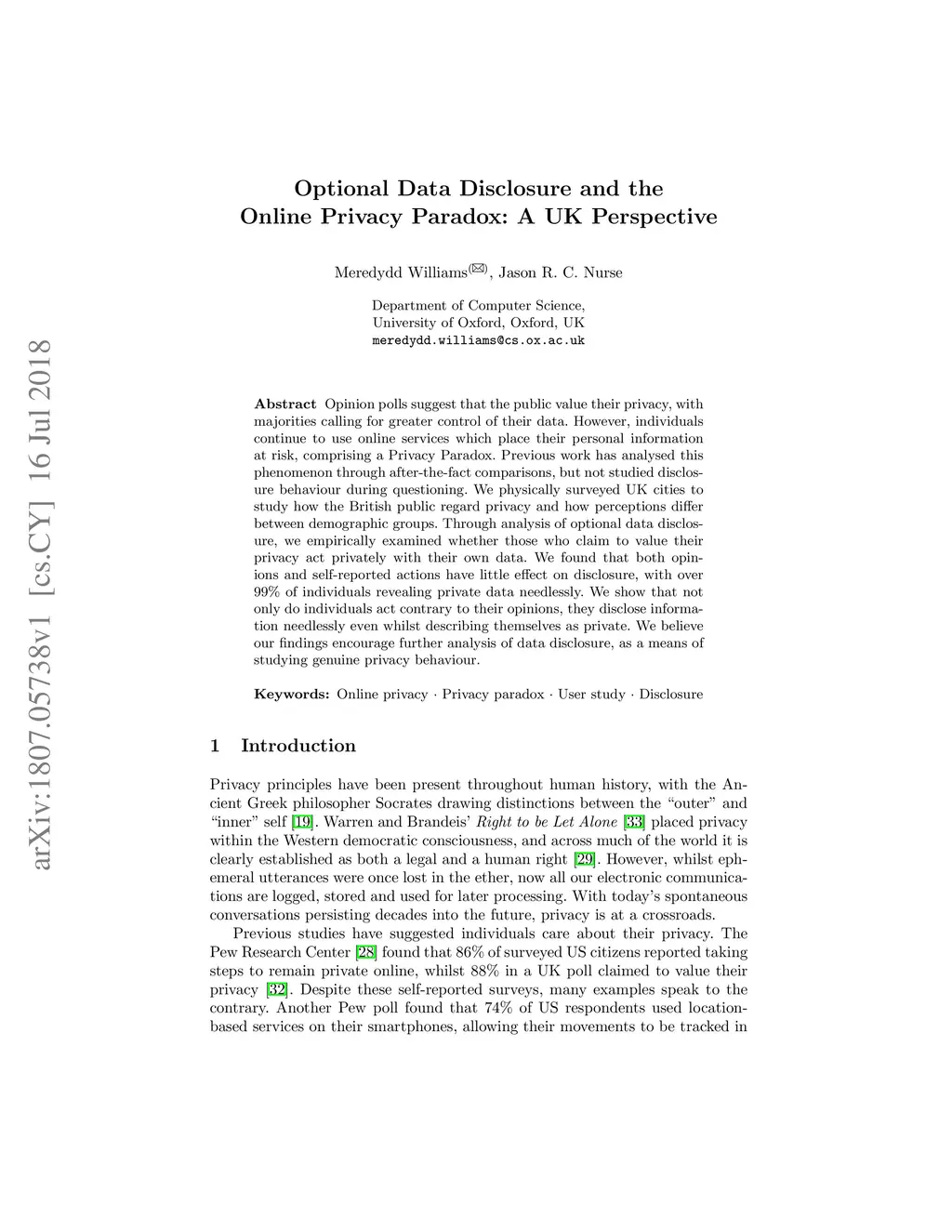 Optional Data Disclosure and the Online Privacy Paradox: A UK