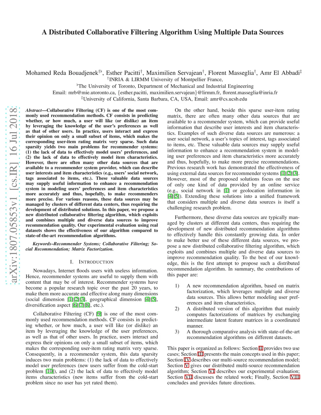 A Distributed Collaborative Filtering Algorithm Using Multiple Data