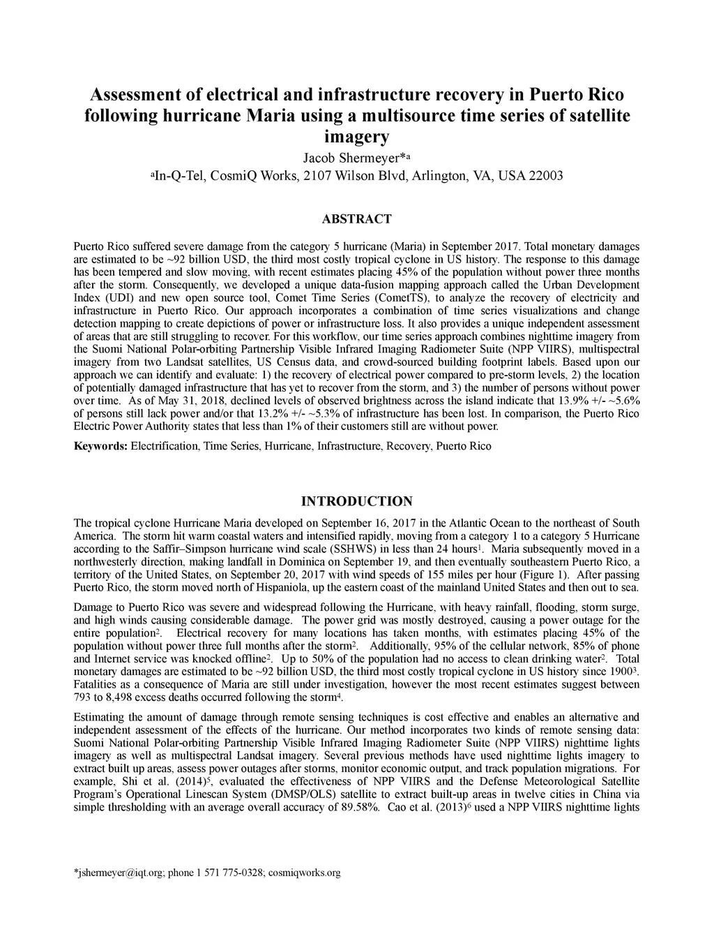 Assessment of electrical and infrastructure recovery in Puerto Rico