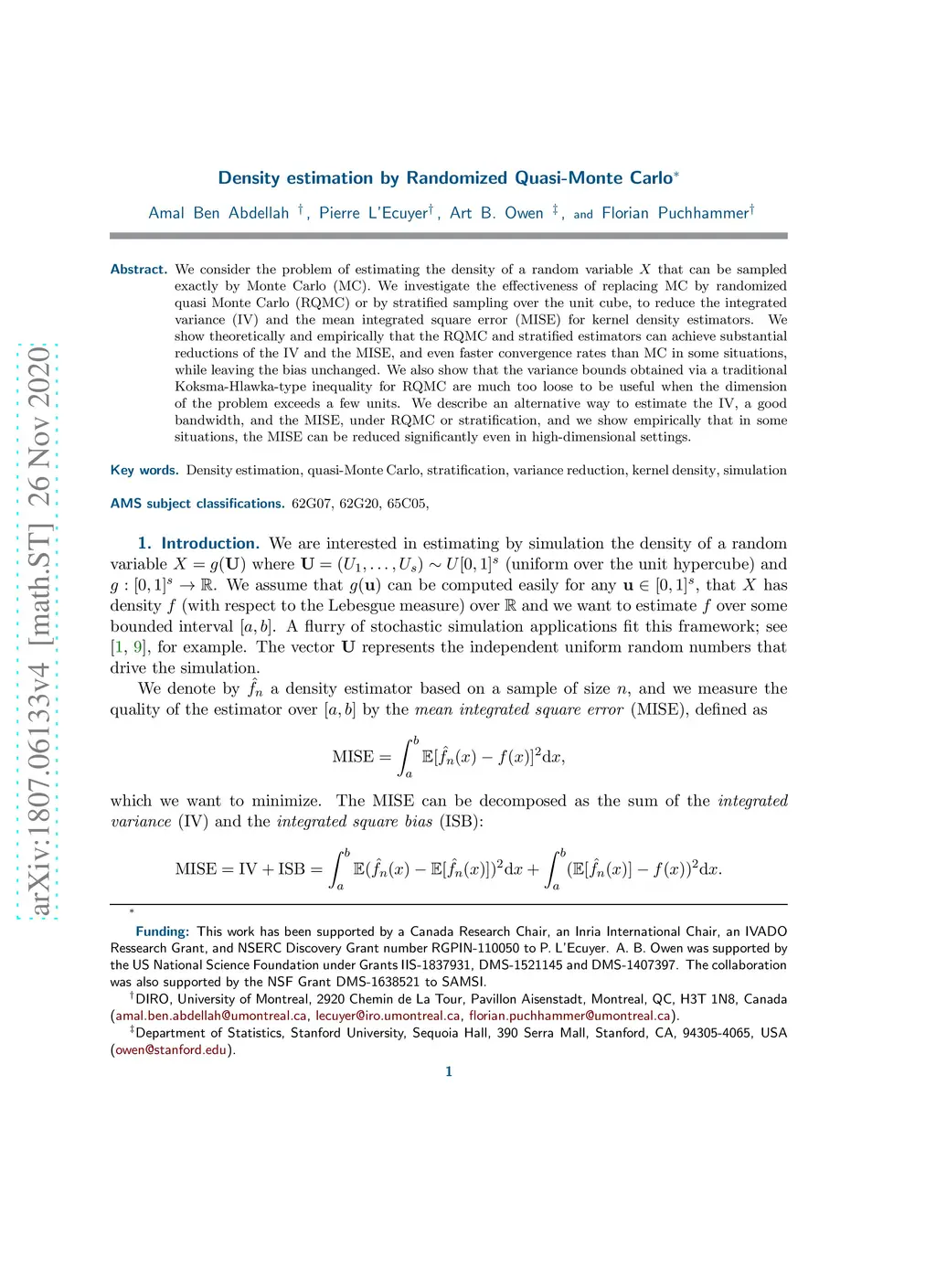 Density estimation by Randomized Quasi-Monte Carlo