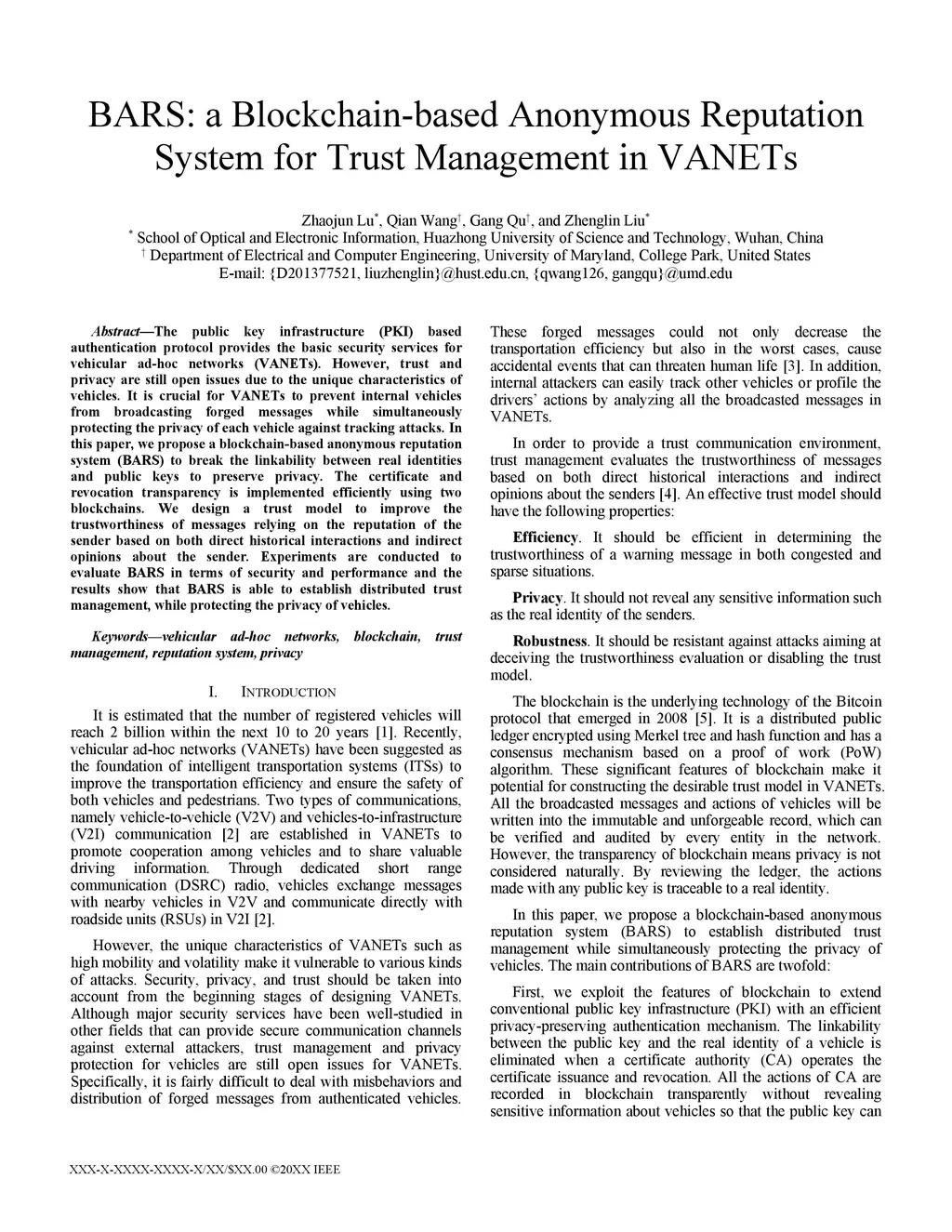 BARS: a Blockchain-based Anonymous Reputation System for Trust