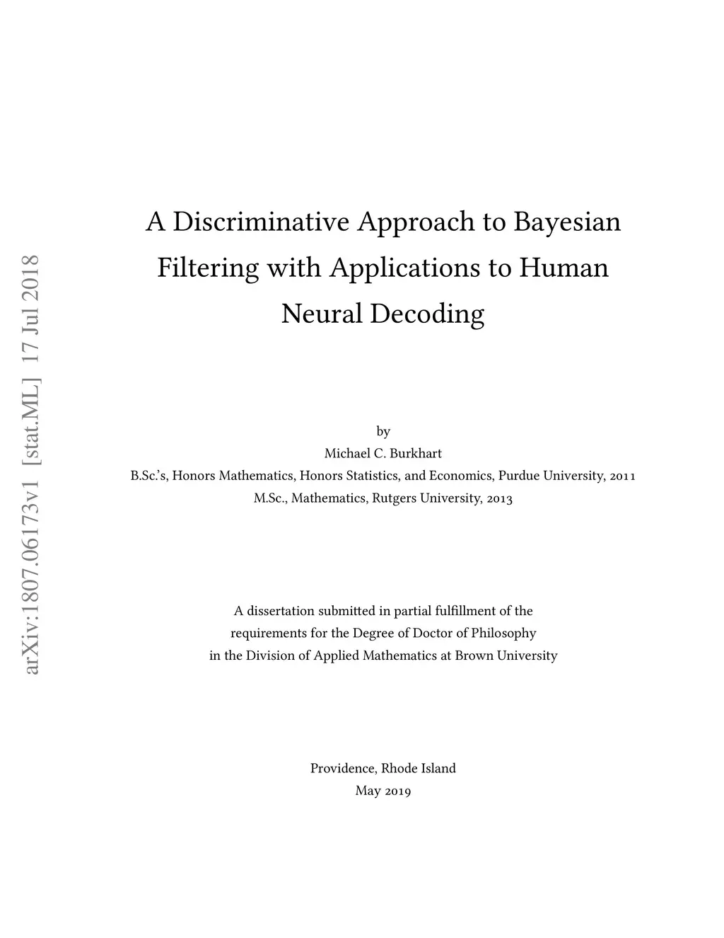 Given a stationary state-space model that relates a sequence of hidden states and corresponding measurements or observations, Bayesian filtering provides a principled statistical framework for inferring the posterior distribution of the current state given all measurements up to the present time. For example, the Apollo lunar module implemented a Kalman filter to infer its location from a sequence of earth-based radar measurements and land safely on the moon. To perform Bayesian filtering, we require a measurement model that describes the conditional distribution of each observation given state. The Kalman filter takes this measurement model to be linear, Gaussian. Here we show how a nonlinear, Gaussian approximation to the distribution of state given observation can be used in conjunction with Bayes' rule to build a nonlinear, non-Gaussian measurement model. The resulting approach, called the Discriminative Kalman Filter (DKF), retains fast closed-form updates for the posterior. We argue there are many cases where the distribution of state given measurement is better-approximated as Gaussian, especially when the dimensionality of measurements far exceeds that of states and the Bernstein-von Mises theorem applies. Online neural decoding for brain-computer interfaces provides a motivating example, where filtering incorporates increasingly detailed measurements of neural activity to provide users control over external devices. Within the BrainGate2 clinical trial, the DKF successfully enabled three volunteers with quadriplegia to control an on-screen cursor in real-time using mental imagery alone. Participant "T9" used the DKF to type out messages on a tablet PC.