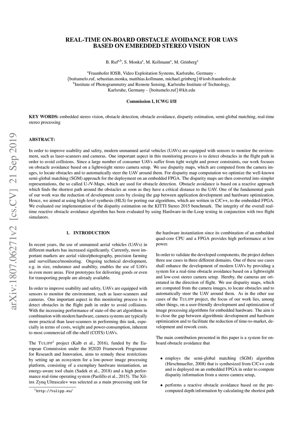 Real-time on-board obstacle avoidance for UAVs based on embedded stereo