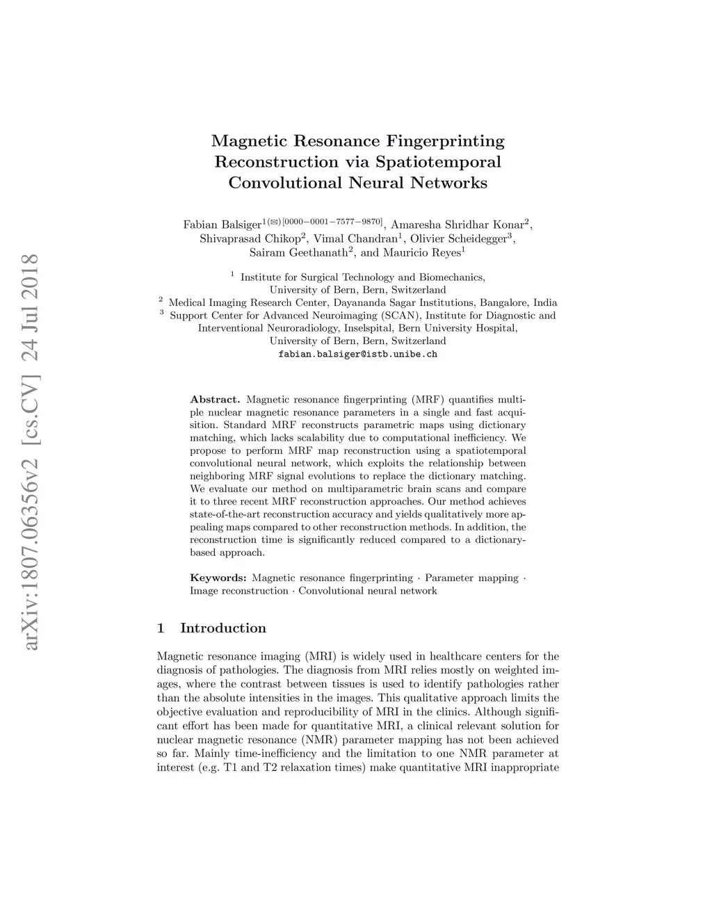 Magnetic resonance fingerprinting (MRF) quantifies multiple nuclear magnetic resonance parameters in a single and fast acquisition. Standard MRF reconstructs parametric maps using dictionary matching, which lacks scalability due to computational inefficiency. We propose to perform MRF map reconstruction using a spatiotemporal convolutional neural network, which exploits the relationship between neighboring MRF signal evolutions to replace the dictionary matching. We evaluate our method on multiparametric brain scans and compare it to three recent MRF reconstruction approaches. Our method achieves state-of-the-art reconstruction accuracy and yields qualitatively more appealing maps compared to other reconstruction methods. In addition, the reconstruction time is significantly reduced compared to a dictionary-based approach.