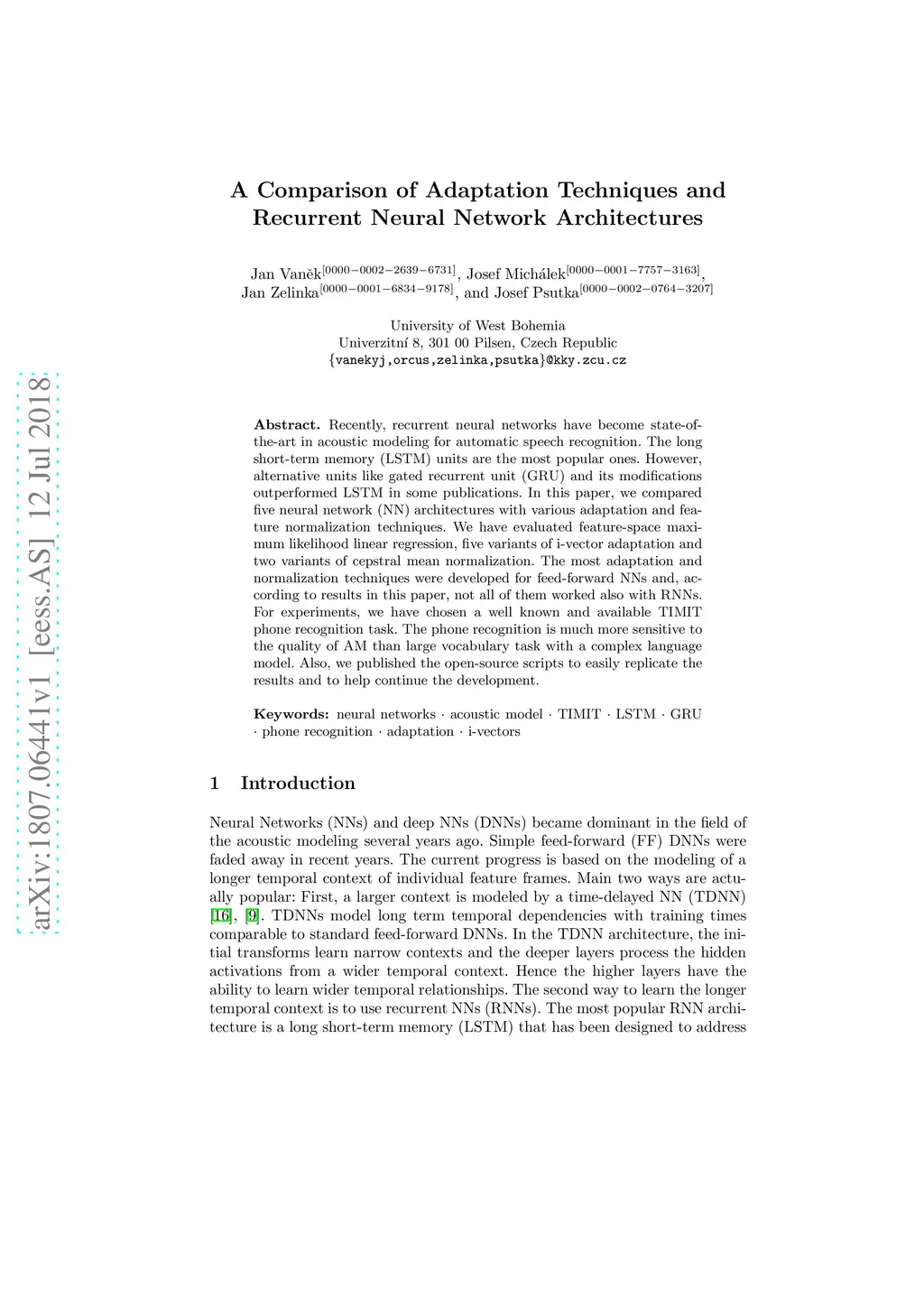A Comparison of Adaptation Techniques and Recurrent Neural Network