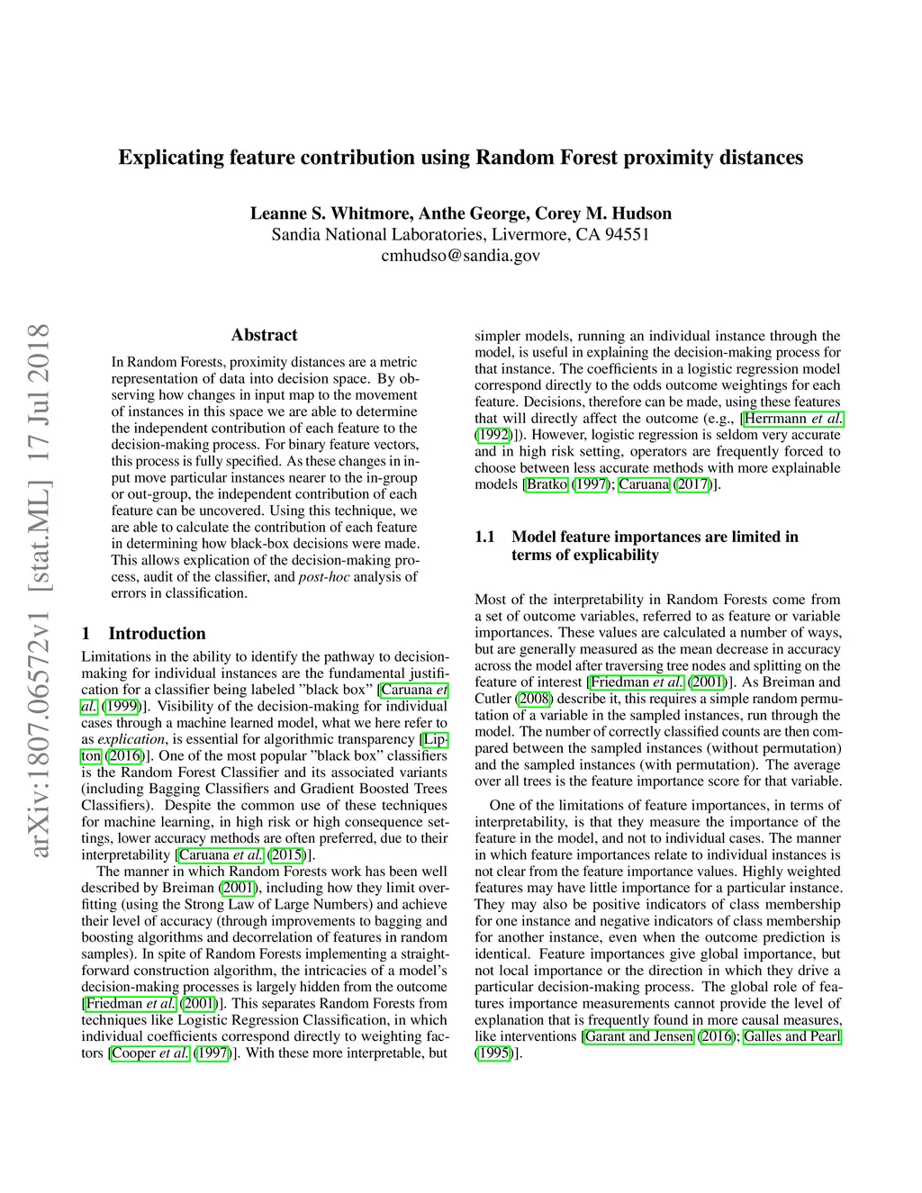 In Random Forests, proximity distances are a metric representation of data into decision space. By observing how changes in input map to the movement of instances in this space we are able to determine the independent contribution of each feature to the decision-making process. For binary feature vectors, this process is fully specified. As these changes in input move particular instances nearer to the in-group or out-group, the independent contribution of each feature can be uncovered. Using this technique, we are able to calculate the contribution of each feature in determining how black-box decisions were made. This allows explication of the decision-making process, audit of the classifier, and post-hoc analysis of errors in classification.