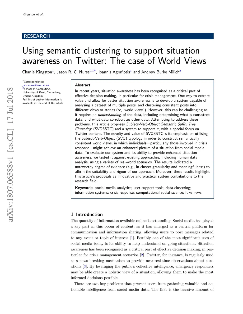 Using semantic clustering to support situation awareness on Twitter: The