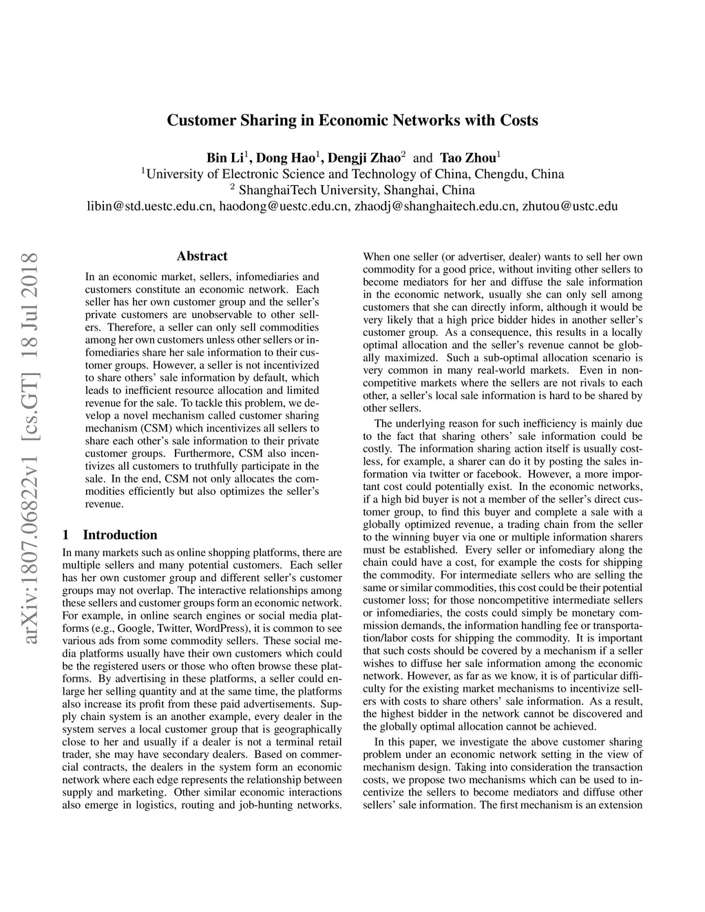 In an economic market, sellers, infomediaries and customers constitute an economic network. Each seller has her own customer group and the seller's private customers are unobservable to other sellers. Therefore, a seller can only sell commodities among her own customers unless other sellers or infomediaries share her sale information to their customer groups. However, a seller is not incentivized to share others' sale information by default, which leads to inefficient resource allocation and limited revenue for the sale. To tackle this problem, we develop a novel mechanism called customer sharing mechanism (CSM) which incentivizes all sellers to share each other's sale information to their private customer groups. Furthermore, CSM also incentivizes all customers to truthfully participate in the sale. In the end, CSM not only allocates the commodities efficiently but also optimizes the seller's revenue.