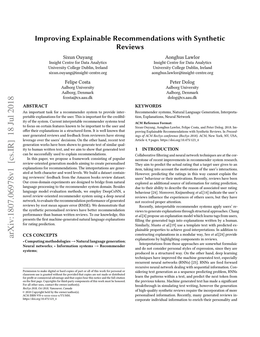 Improving Explainable Recommendations with Synthetic Reviews
