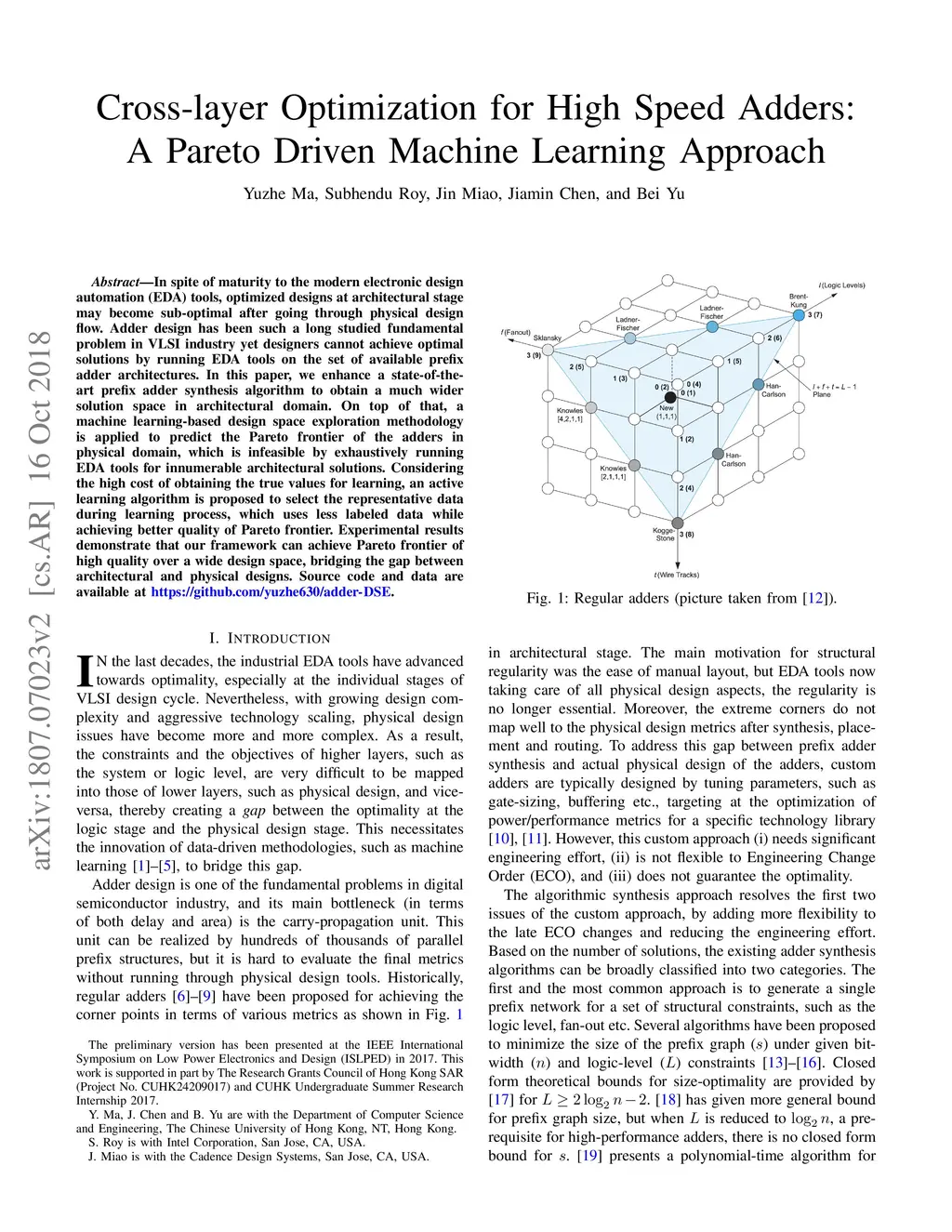 Cross-layer Optimization for High Speed Adders: A Pareto Driven Machine