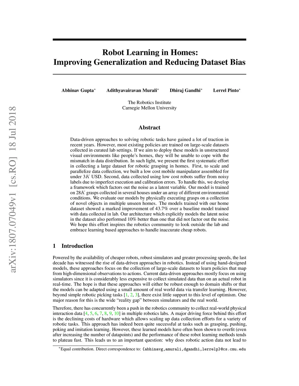 Robot Learning in Homes: Improving Generalization and Reducing Dataset