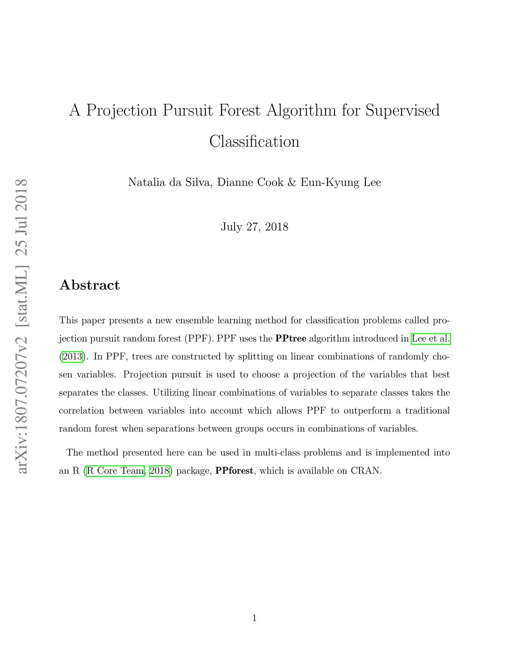 A Projection Pursuit Forest Algorithm for Supervised Classification