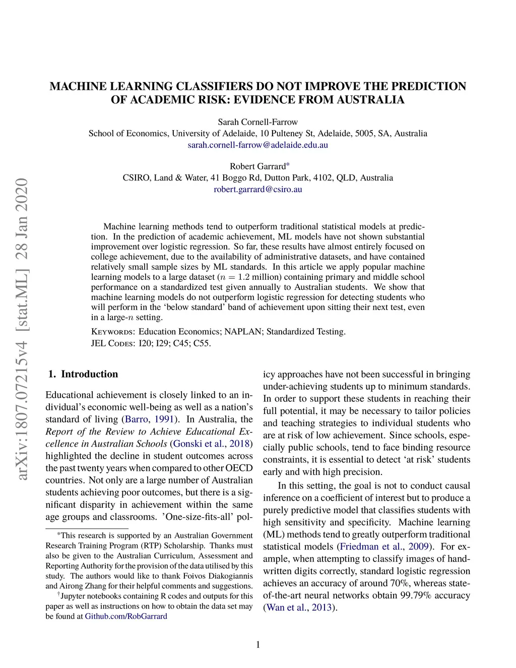 Machine Learning Classifiers Do Not Improve the Prediction of Academic