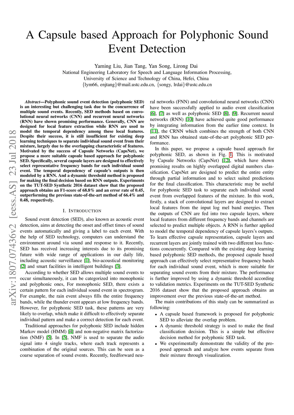 A Capsule based Approach for Polyphonic Sound Event Detection