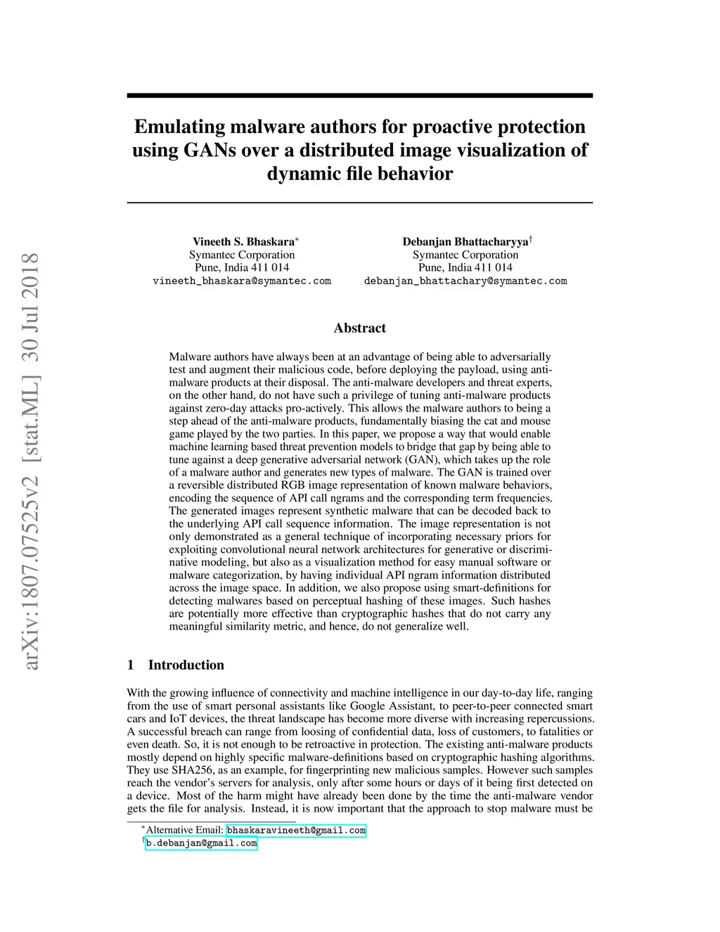 Emulating malware authors for proactive protection using GANs over a