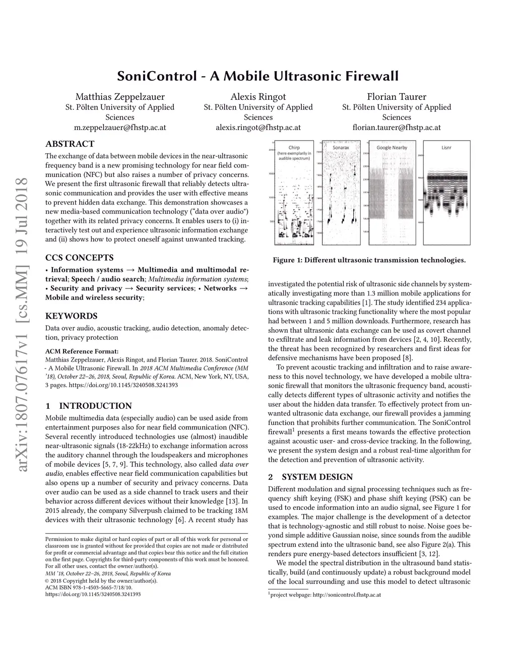 The exchange of data between mobile devices in the near-ultrasonic frequency band is a new promising technology for near field communication (NFC) but also raises a number of privacy concerns. We present the first ultrasonic firewall that reliably detects ultrasonic communication and provides the user with effective means to prevent hidden data exchange. This demonstration showcases a new media-based communication technology ("data over audio") together with its related privacy concerns. It enables users to (i) interactively test out and experience ultrasonic information exchange and (ii) shows how to protect oneself against unwanted tracking.