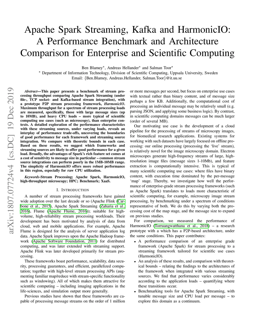 Apache Spark Streaming, Kafka and HarmonicIO: A Performance Benchmark