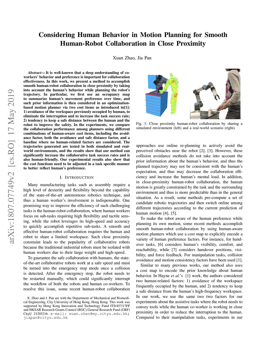 Considering Human Behavior in Motion Planning for Smooth Human-Robot