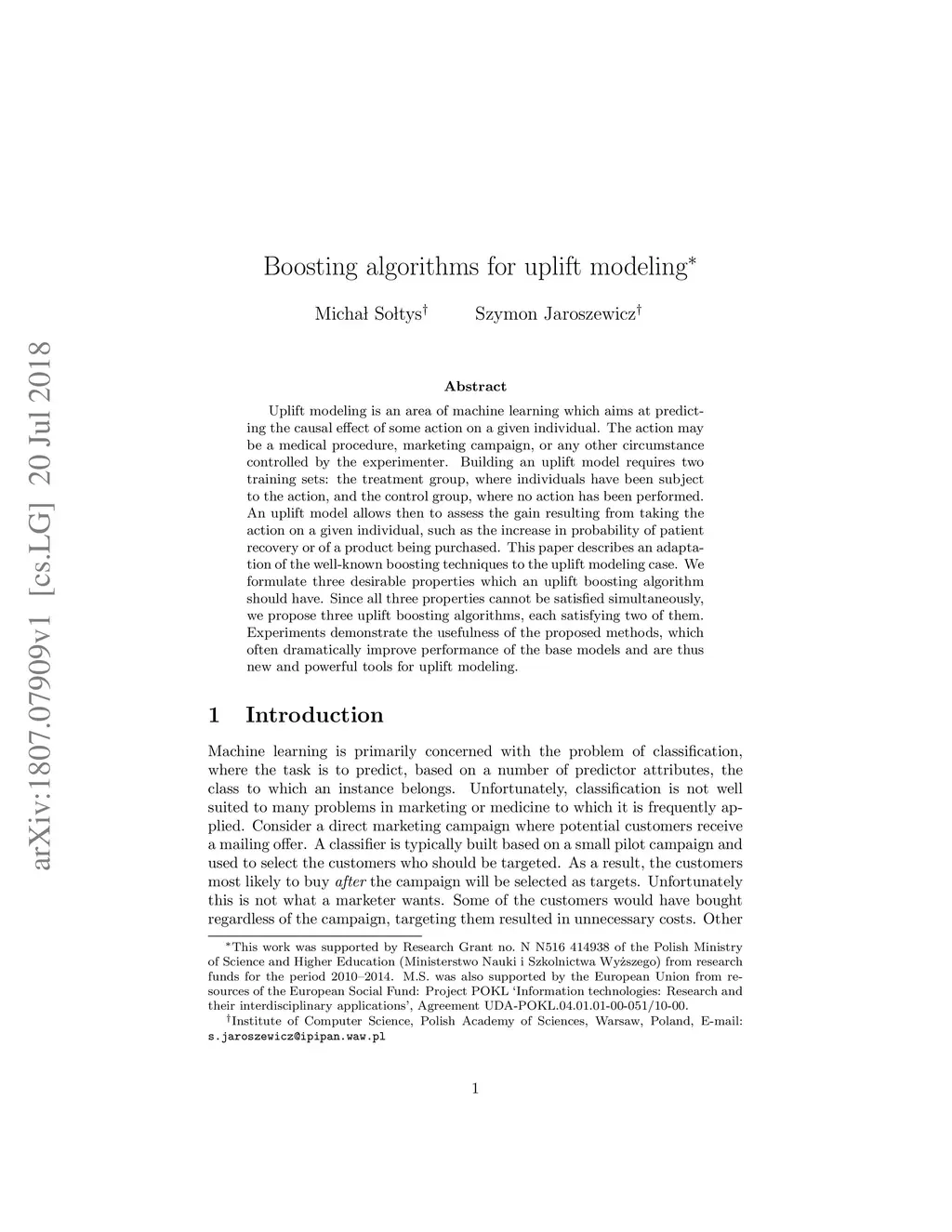 Boosting algorithms for uplift modeling