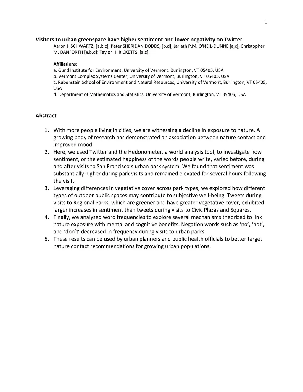 Visitors to urban greenspace have higher sentiment and lower negativity