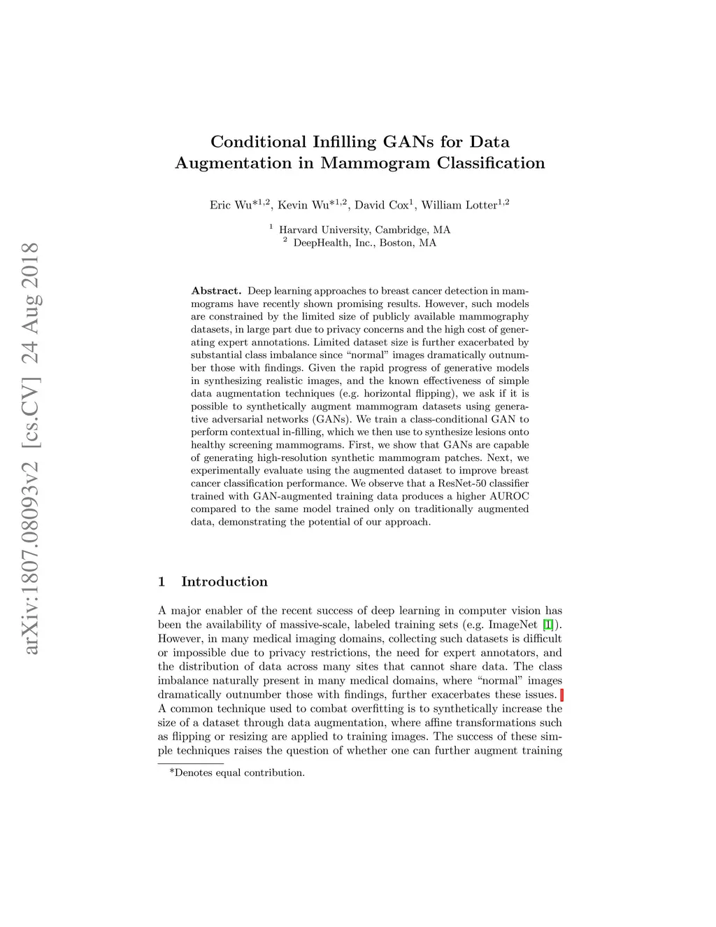 Conditional Infilling GANs for Data Augmentation in Mammogram