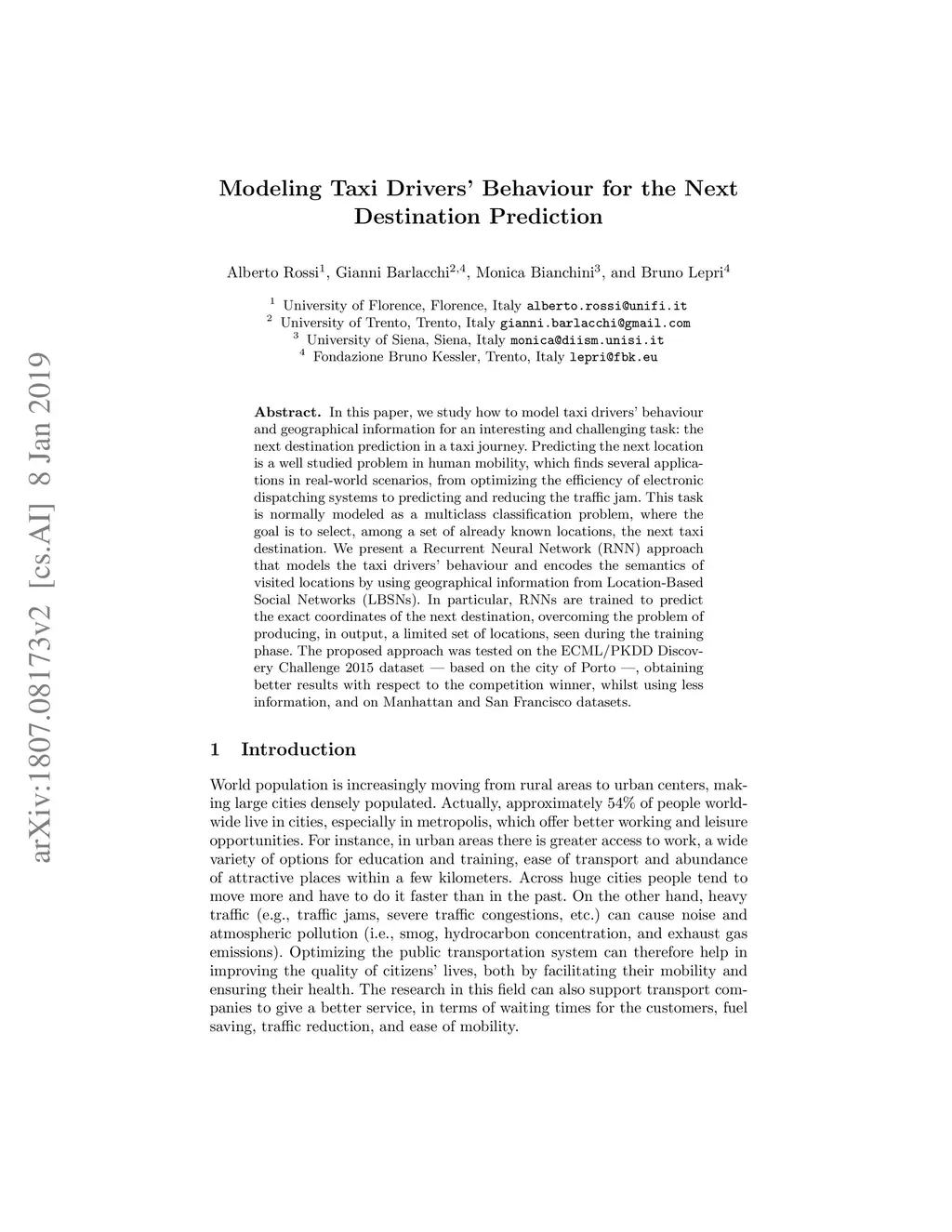 Modeling Taxi Drivers' Behaviour for the Next Destination Prediction