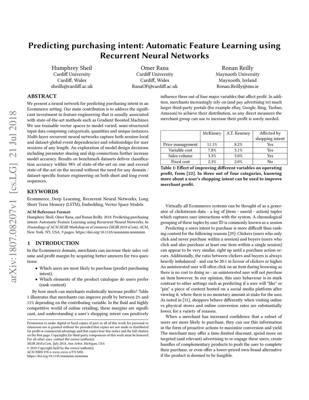 Predicting purchasing intent: Automatic Feature Learning using Recurrent