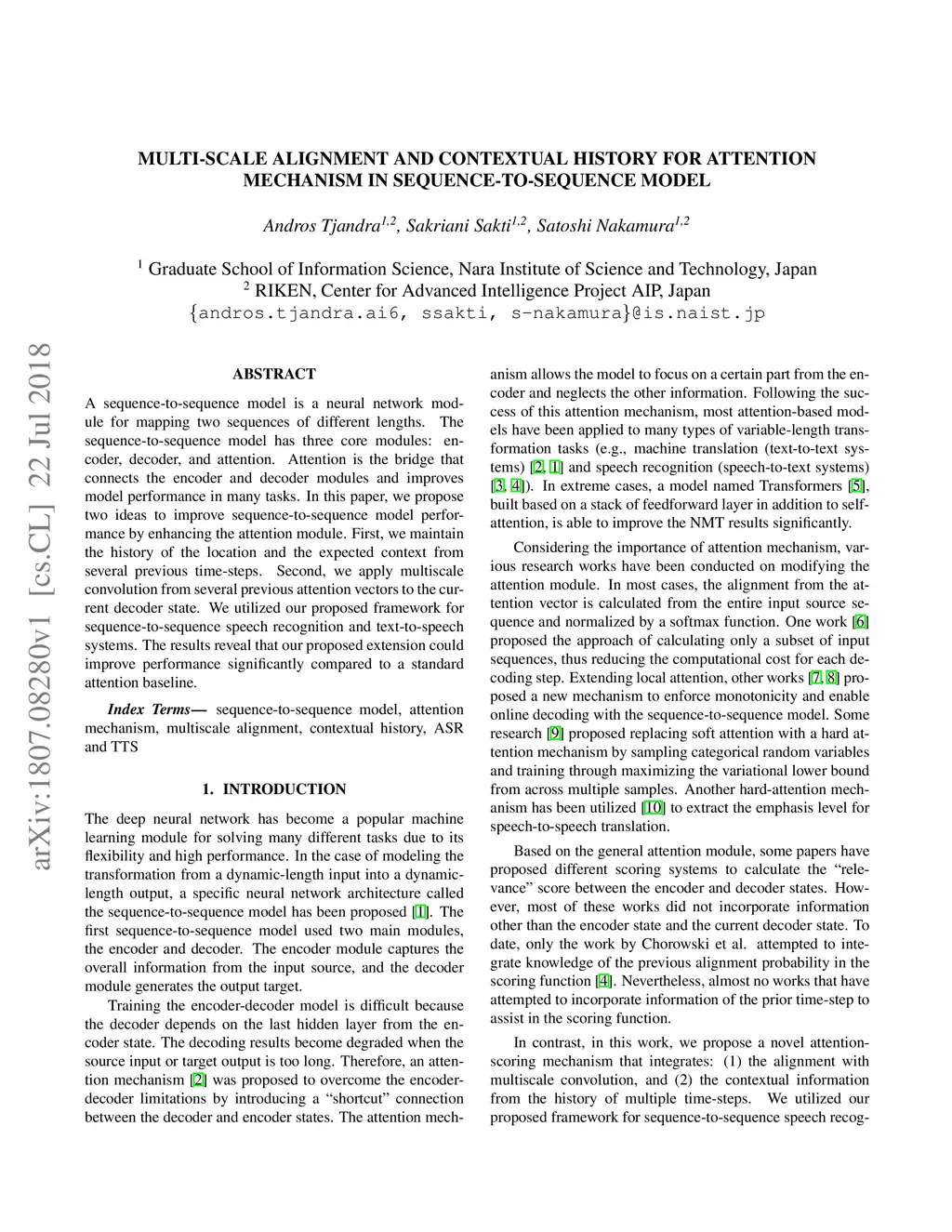 Multi-scale Alignment and Contextual History for Attention Mechanism in
