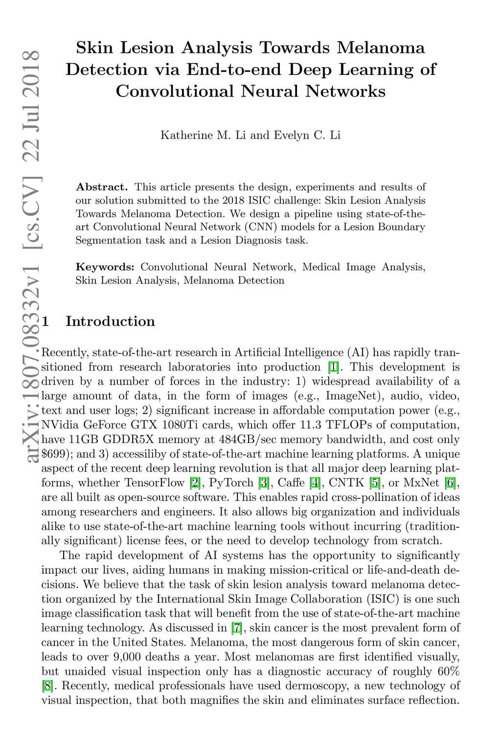 Skin Lesion Analysis Towards Melanoma Detection via End-to-end Deep