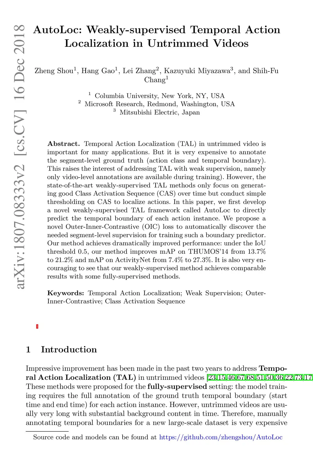 AutoLoc: Weakly-supervised Temporal Action Localization