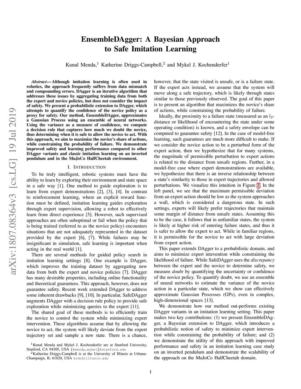 EnsembleDAgger: A Bayesian Approach to Safe Imitation Learning