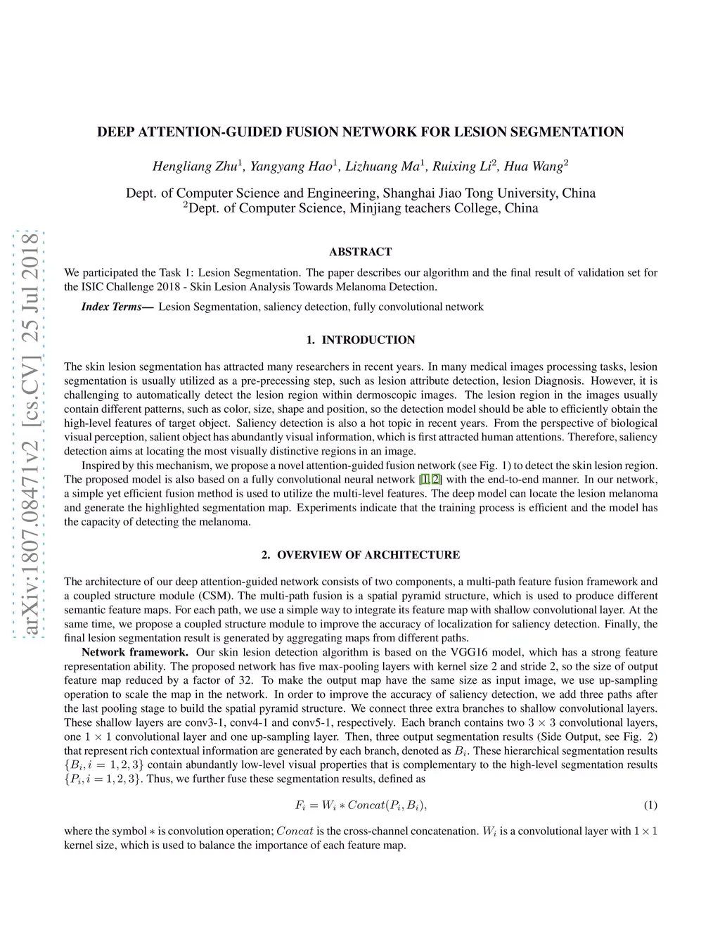 Deep attention-guided fusion network for lesion segmentation