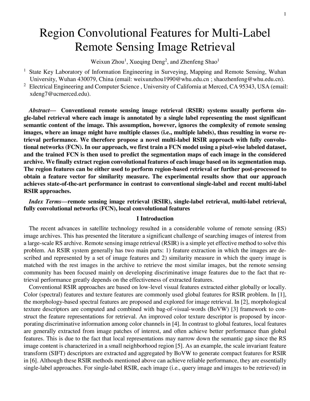 Region Convolutional Features for Multi-Label Remote Sensing Image