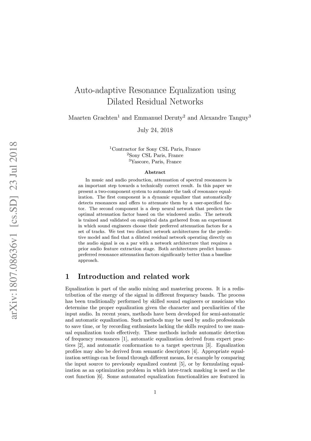 Auto-adaptive Resonance Equalization using Dilated Residual Networks