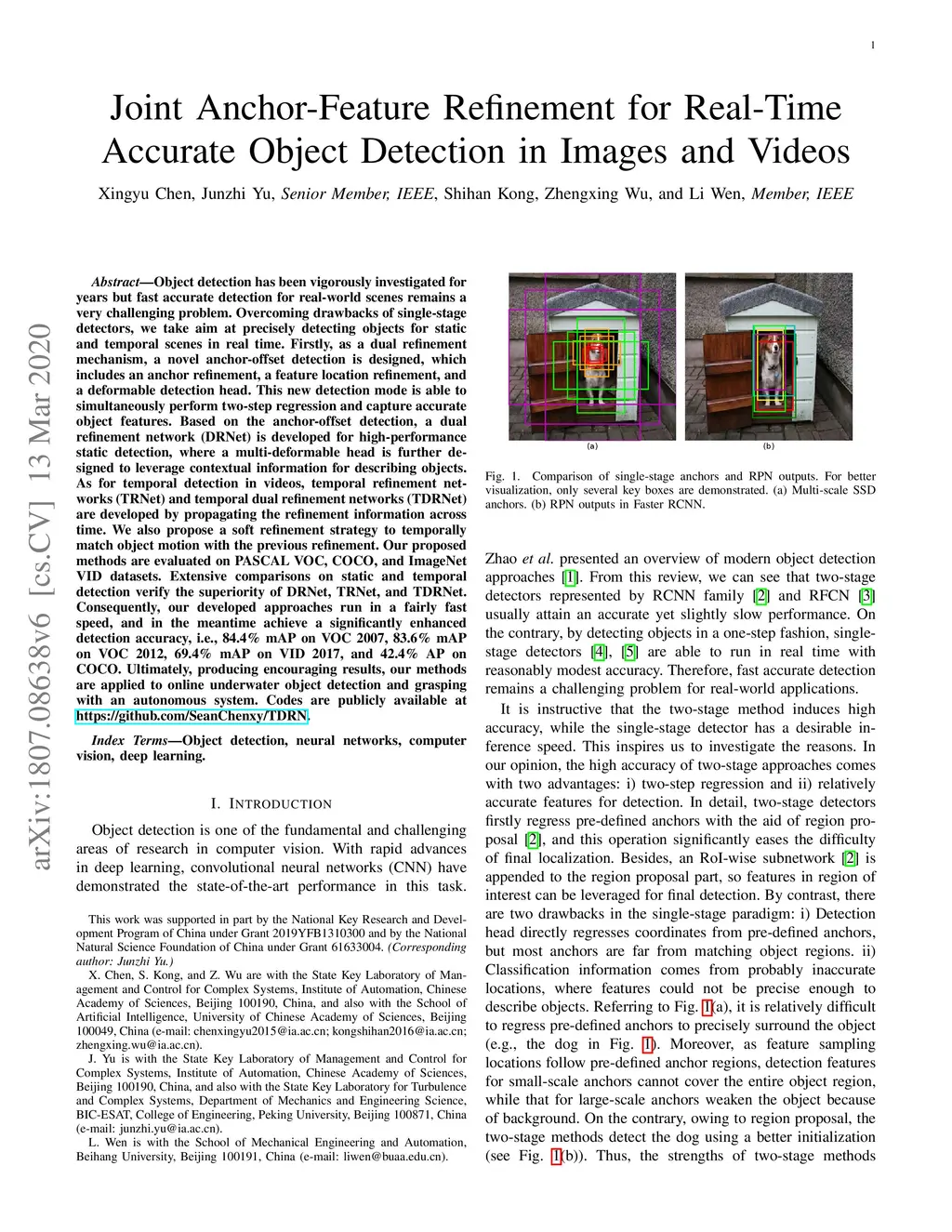 Object detection has been vigorously investigated for years but fast accurate detection for real-world scenes remains a very challenging problem. Overcoming drawbacks of single-stage detectors, we take aim at precisely detecting objects for static and temporal scenes in real time. Firstly, as a dual refinement mechanism, a novel anchor-offset detection is designed, which includes an anchor refinement, a feature location refinement, and a deformable detection head. This new detection mode is able to simultaneously perform two-step regression and capture accurate object features. Based on the anchor-offset detection, a dual refinement network (DRNet) is developed for high-performance static detection, where a multi-deformable head is further designed to leverage contextual information for describing objects. As for temporal detection in videos, temporal refinement networks (TRNet) and temporal dual refinement networks (TDRNet) are developed by propagating the refinement information across time. We also propose a soft refinement strategy to temporally match object motion with the previous refinement. Our proposed methods are evaluated on PASCAL VOC, COCO, and ImageNet VID datasets. Extensive comparisons on static and temporal detection verify the superiority of DRNet, TRNet, and TDRNet. Consequently, our developed approaches run in a fairly fast speed, and in the meantime achieve a significantly enhanced detection accuracy, i.e., 84.4% mAP on VOC 2007, 83.6% mAP on VOC 2012, 69.4% mAP on VID 2017, and 42.4% AP on COCO. Ultimately, producing encouraging results, our methods are applied to online underwater object detection and grasping with an autonomous system. Codes are publicly available at https://github.com/SeanChenxy/TDRN.