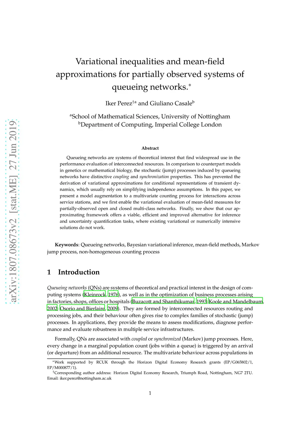Queueing networks are systems of theoretical interest that find widespread use in the performance evaluation of interconnected resources. In comparison to counterpart models in genetics or mathematical biology, the stochastic (jump) processes induced by queueing networks have distinctive coupling and synchronization properties. This has prevented the derivation of variational approximations for conditional representations of transient dynamics, which rely on simplifying independence assumptions. Here, we present a model augmentation to a multivariate counting process for interactions across service stations, and we enable the variational evaluation of mean-field measures for partially-observed multi-class networks. We also show that our framework offers an efficient and improved alternative for inference tasks, where existing variational or numerically intensive solutions do not work.