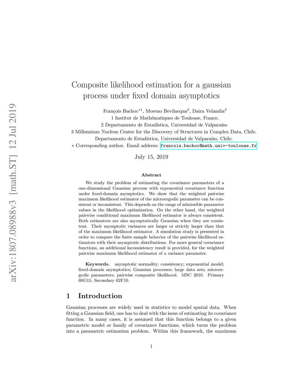 We study composite likelihood estimation of the covariance parameters with data from a one-dimensional Gaussian process with exponential covariance function under fixed domain asymptotics. We show that the weighted pairwise maximum likelihood estimator of the microergodic parameter can be consistent or inconsistent , depending on the range of admissible parameter values in the likelihood optimization. On the contrary, the weighted pairwise conditional maximum likelihood estimator is always consistent. Both estimators are also asymptotically Gaussian when they are consistent, with asymptotic variance larger or strictly larger than that of the maximum likelihood estimator. A simulation study is presented in order to compare the finite sample behavior of the pairwise likelihood estimators with their asymptotic distributions.