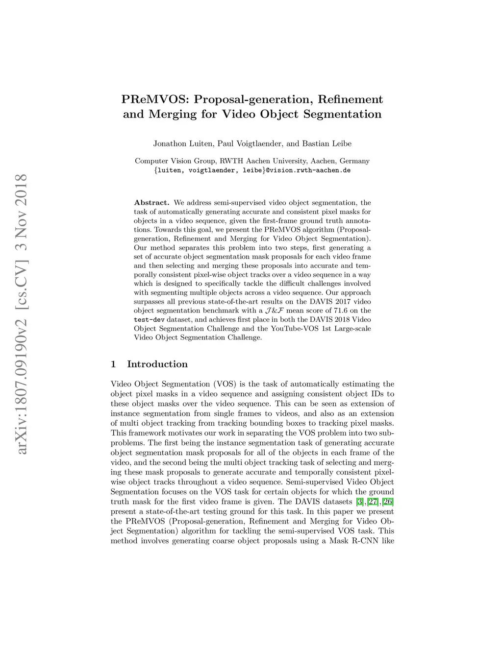 PReMVOS: Proposal-generation, Refinement and Merging for Video Object
