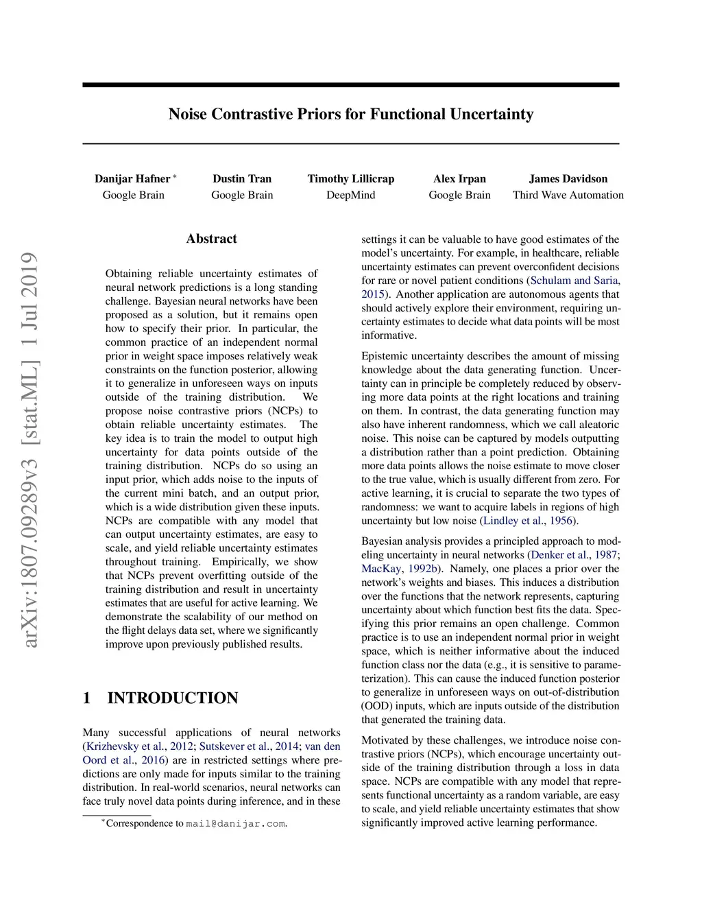 Noise Contrastive Priors for Functional Uncertainty
