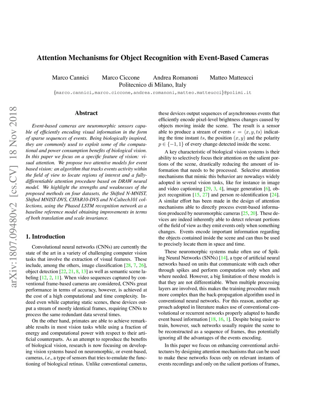 Attention Mechanisms for Object Recognition with Event-Based Cameras