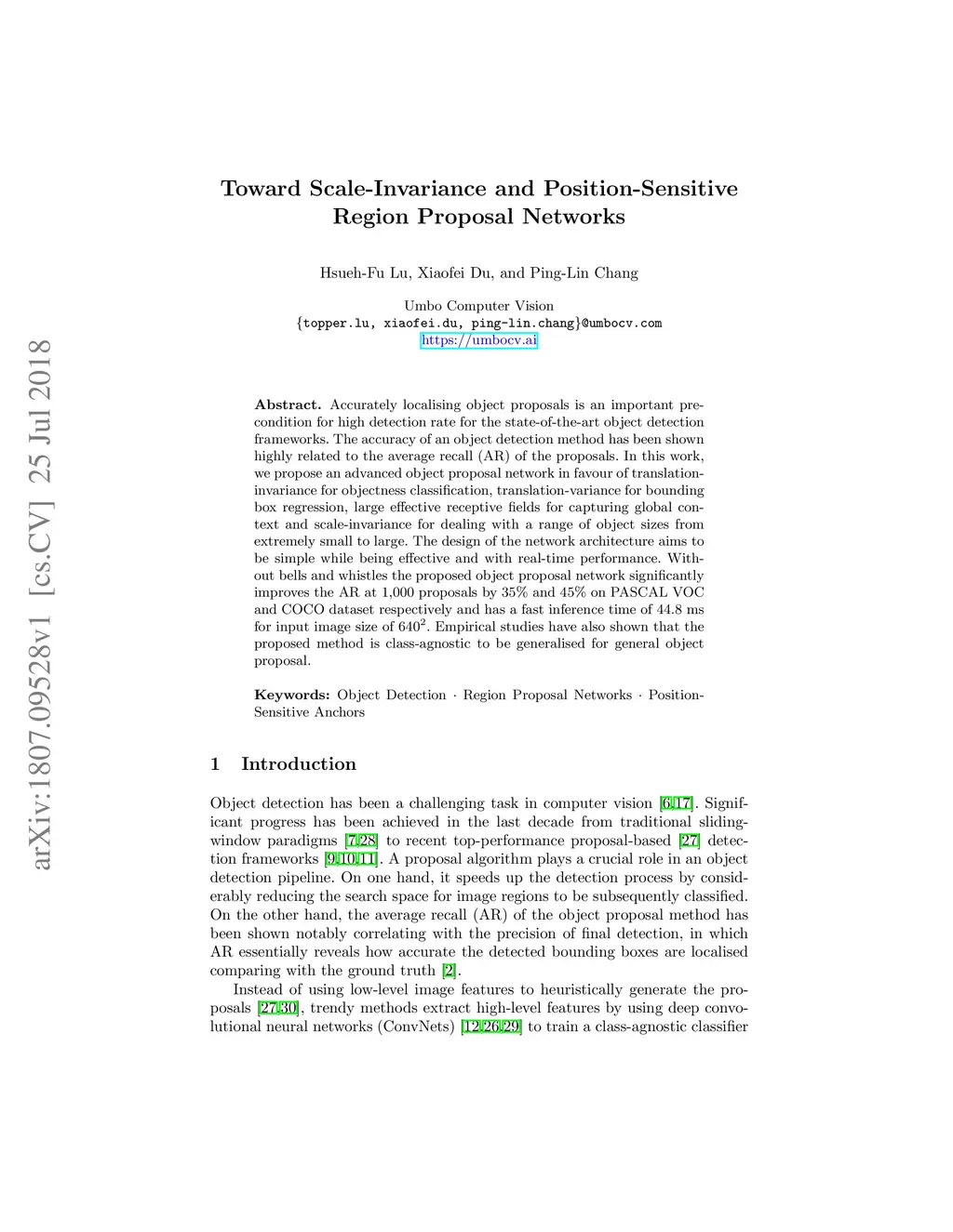 Toward Scale-Invariance and Position-Sensitive Region Proposal Networks
