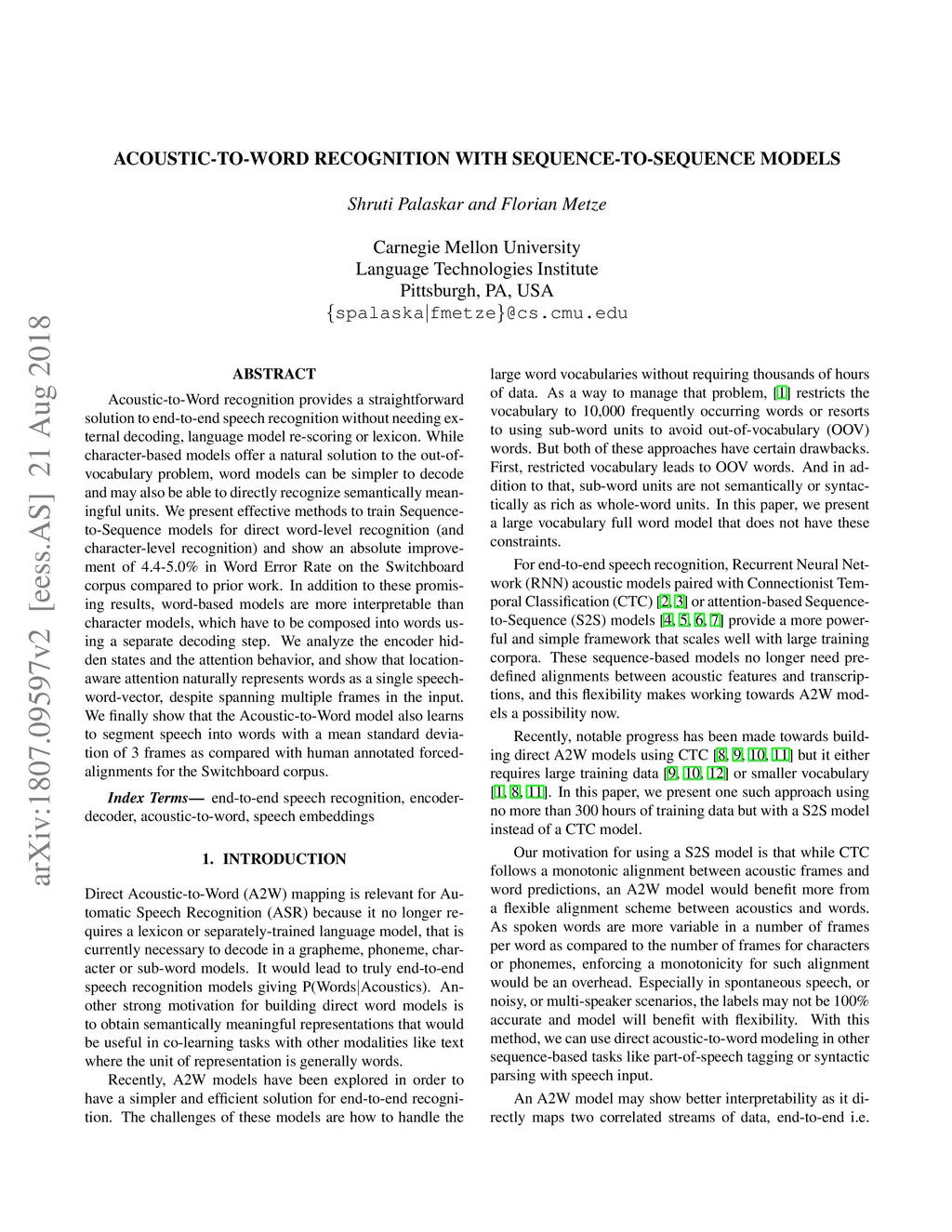 Acoustic-to-Word Recognition with Sequence-to-Sequence Models
